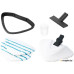 удлинительная ручка, щетка для пола, 2 тряпки для пола, ворсовая насадка-скребок, рамка для ковра, стакан для наливания воды